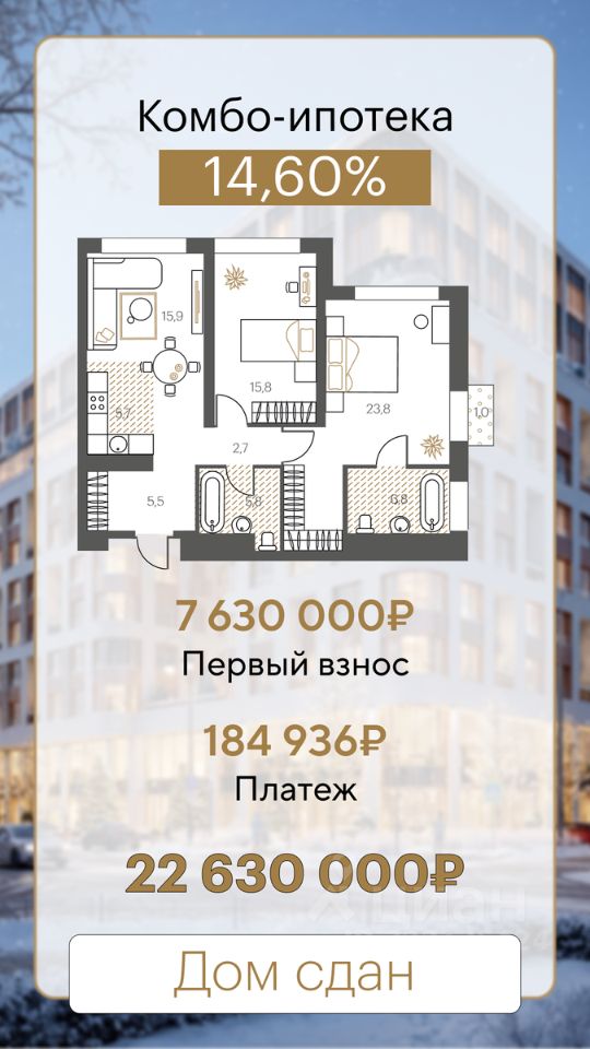 60 м² · Этаж 8 из 15
