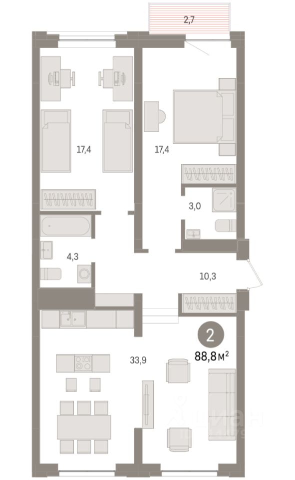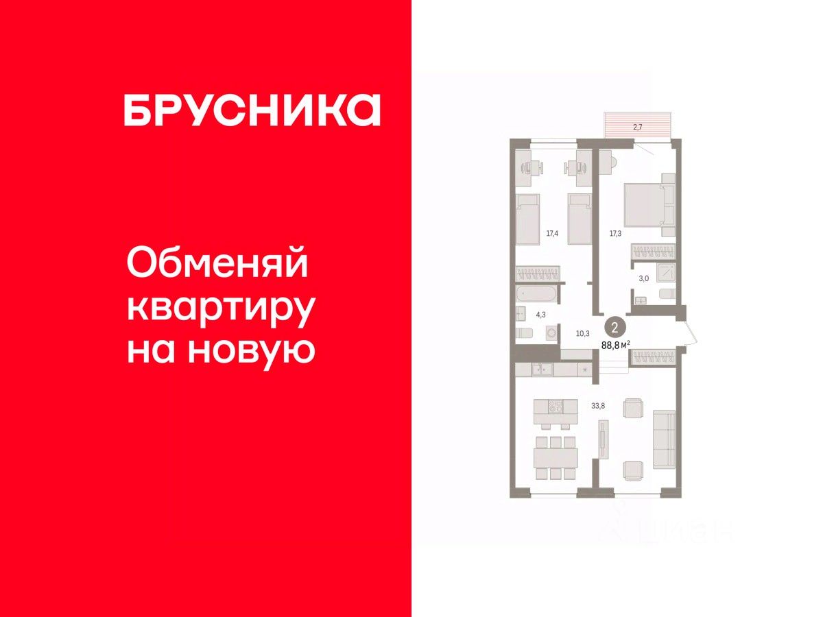 Эксклюзивные ипотечные условия. Квартира в рассрочку без процентов от застройщика. Дом будет сдан в 4 квартале 2025 года. Звоните, наши менеджеры вам все расскажут! Просторная 4-комн. квартира с предчистовой отделкой в ЖК ''Республики 205'' на 17 этаже. Общая площадь: 124.71 кв.м., жилая: 46.8 кв.м., площадь просторной кухни-гостиной: 28.8 кв.м. Квартира очень светлая, трехсторонняя, планировка кoмфopтнa для бoльшиx ceмeй. В квартире две лоджии, два совмещенных санузла. Высота потолков 2.6 м. Купить квартиру можно с помощью программ покупки от застройщика Брусника: - ипотека по эксклюзивной ставке с помощью в получении положительного кредитного решения через сервис ипотечный брокер, - квартиры в рассрочку без процентов от застройщика Брусника, - обмен квартиры на новую. Получить одобрение ипотеки или рассрочку, а также осуществить обмен квартир можно онлайн. Дом монолитный, многоподъездный, переменной этажности, от 9 до 17 этажей. Квартира находится в 1-й секции высотой 17 этажей в корпусе 1. На этаже 7 квартир. В подъезде 1 пассажирский и 1 грузовой лифт. Начало строительства - 2 квартал 2023 года. На сегодняшний день строительство завершено, дом сдан в 4 квартале 2025 года. Оформление сделки по договору купли-продажи. Район Проект расположен в границах улиц Пермякова, Энергетиков, Воровского и Республики. До центра города — 10 минут на машине. Рядом — автомобильная развязка на пересечении улиц Пермякова и Республики. В шаговой доступности есть школы, детские сады, поликлиники, крупный торговый центр, автовокзал и несколько скверов. Проект ''Республики 205'' — это проект комплексного развития территории, уникальный по своему наполнению. Переосмысляя бывшую территорию завода медицинского оборудования, мы создадим новое место силы — микрорайон, насыщенный деловой, развлекательной, рекреационной, игровой, образовательной и медицинской инфраструктурой. До каждого полезного сервиса здесь можно будет дойти за 15 минут. Локальными центрами ''Республики 205'' будут общественные пространства — скверы, парки, бульвары и площади. В границах нашего участка мы намерены разместить школу, рассчитанную на 1550 учеников, два детских сада на 300 мест и встроенный детский сад на 100 мест. В одном из цехов бывшего завода расположится креативный кластер ''Кузница''. Он станет площадкой для нескольких институций — галереи, лектория, книжного магазина-библиотеки, кинобара и точек креативного pop-up-ритейла. Пешеходные бульвары внутри района соединят между собой улицу ресторанов, детские и спортивные площадки, событийную площадь и летний кинотеатр. Идентификатор квартиры по базе застройщика: МЕД01-01-1-1. #2I9imD