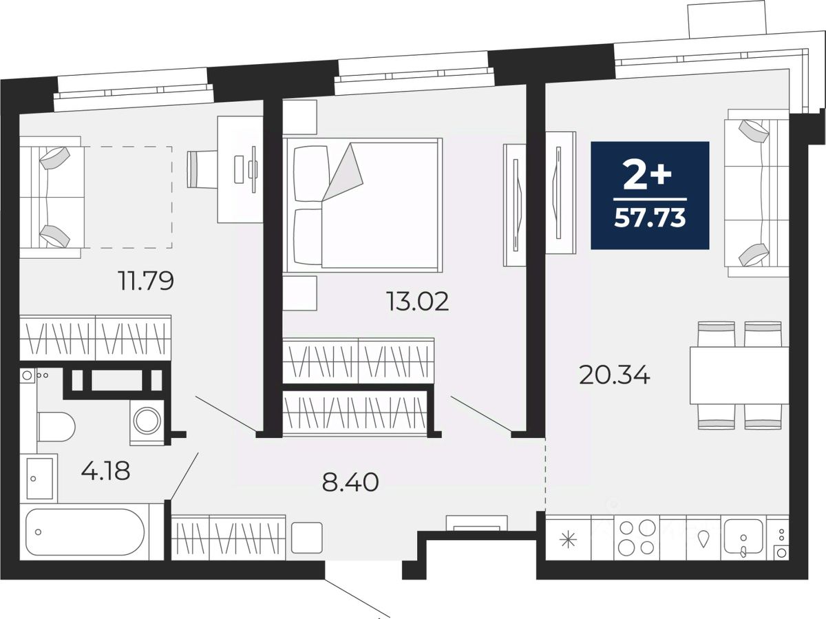 57 м² · Этаж 11 из 22