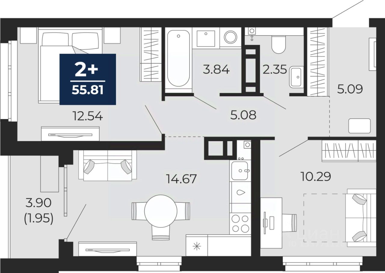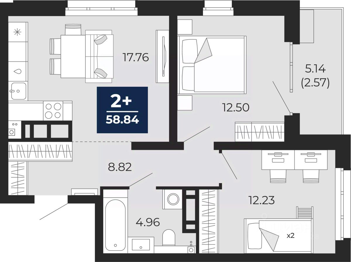 57 м² · Этаж 14 из 23