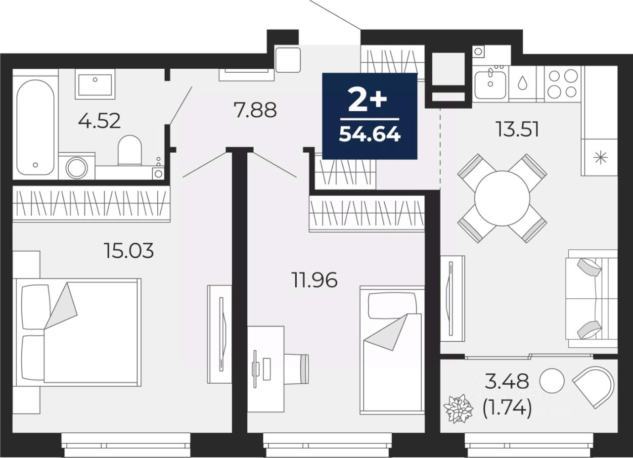 55 м² · Этаж 15 из 22