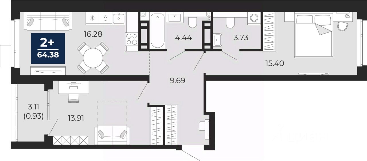 64 м² · Этаж 11 из 14