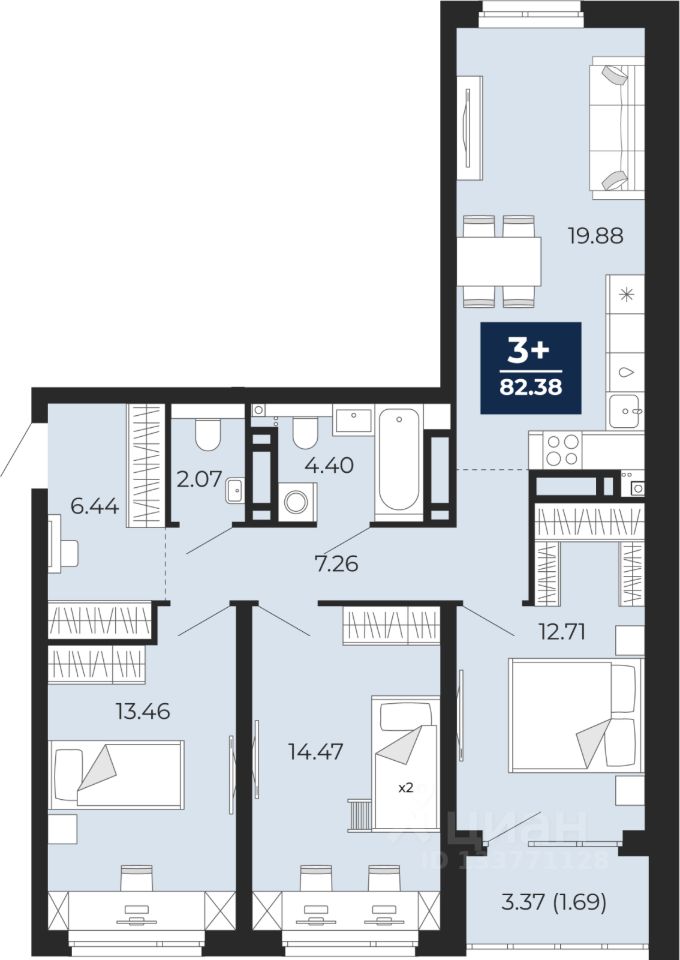 82 м² · Этаж 3 из 22