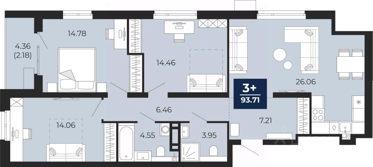 93 м² · Этаж 14 из 14