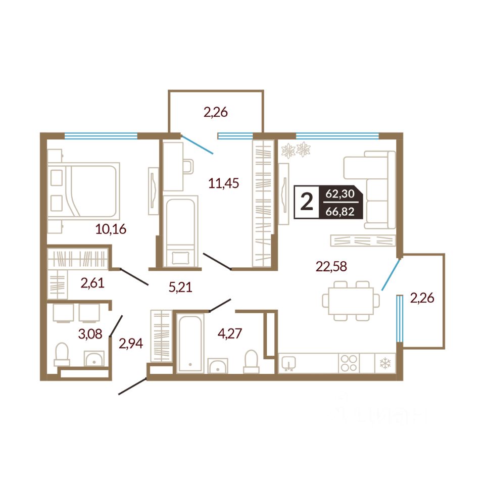 66 м² · Этаж 2 из 4