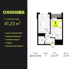 Однокомнатная квартира с предчистовой отделкой в ЖК ''Окинава'' на 2 этаже. Общая площадь: 41.23 кв.м., жилая: 14.92 кв.м., площадь просторной кухни-столовой: 14.99 кв.м. Все окна выходят на одну сторону. В квартире одна лоджия, один совмещенный санузел. Высота потолков 2.7 м. Квартира будет сдана с предчистовой отделкой: на полах стяжка под финишное покрытие, стены подготовлены под покраску или оклейку обоями, разведена вся электрика с подготовкой для установки выключателей и освещения. При желании вы можете заказать отделку под ключ, варианты возможных решений представлены в альбоме фотографий. Дом монолитный, многоподъездный, переменной этажности, от 13 до 19 этажей. Квартира находится в 7-й секции высотой 17 этажей в корпусе Дом Огня. На этаже 8 квартир. В подъезде 1 пассажирский и 1 грузовой лифт. Окончание строительства - 3 квартал 2027 года. Оформление сделки по договору долевого участия. ЖК ''Окинава'' это не просто жилой комплекс, это остров 4 стихий. Они отражаются во внешнем виде фасадов домов, обустройстве дворов и внутреннем оформлении холлов. Каждая из стихий это отдельный дом. Между домами раскинется большой двухуровневый пешеходный бульвар. Первый уровень прогулочный с местами для отдыха, амфитеатром и фонтанами. На втором уровне расположатся площадки для детей, спортивных игр и тренировок. Квартал будет располагать богатой инфраструктурой: на первых этажах разместятся магазины, пекарни, кофейни, пункты выдачи, аптеки, детские центры, цветочные салоны и многое другое, что сделает жизнь поистине комфортной. В жилом комплексе есть кладовые, а также несколько видов паркинга: уличный гостевой, закрытый теплый и паркинг в стилобате, попасть в который можно на лифте с любого жилого этажа. Дворы в каждом доме отражают его стихию, отличаясь по наполнению. Они дополняют друг друга, образуя единое дворовое пространство жилого комплекса. Закрытая территория, свободная от автомобилей, обеспечит безопасность и спокойный отдых. Холлы оформлены керамогранитом, зеркалами и разноуровневым освещением. Витражные входные группы, мягкие зоны ожидания, видеонаблюдение 24/7, вместительные колясочные и даже лапомойки для питомцев всё это будет в ЖК ''Окинава''. Жилой комплекс ''Окинава'' находится в активно развивающемся V заречном микрорайоне, недалеко от озера Алебашево, где в будущем расположится масштабный ивент-парк с зонами отдыха. Удобная транспортная развязка позволит добраться до центра всего за 15 минут. #ZWeiB0