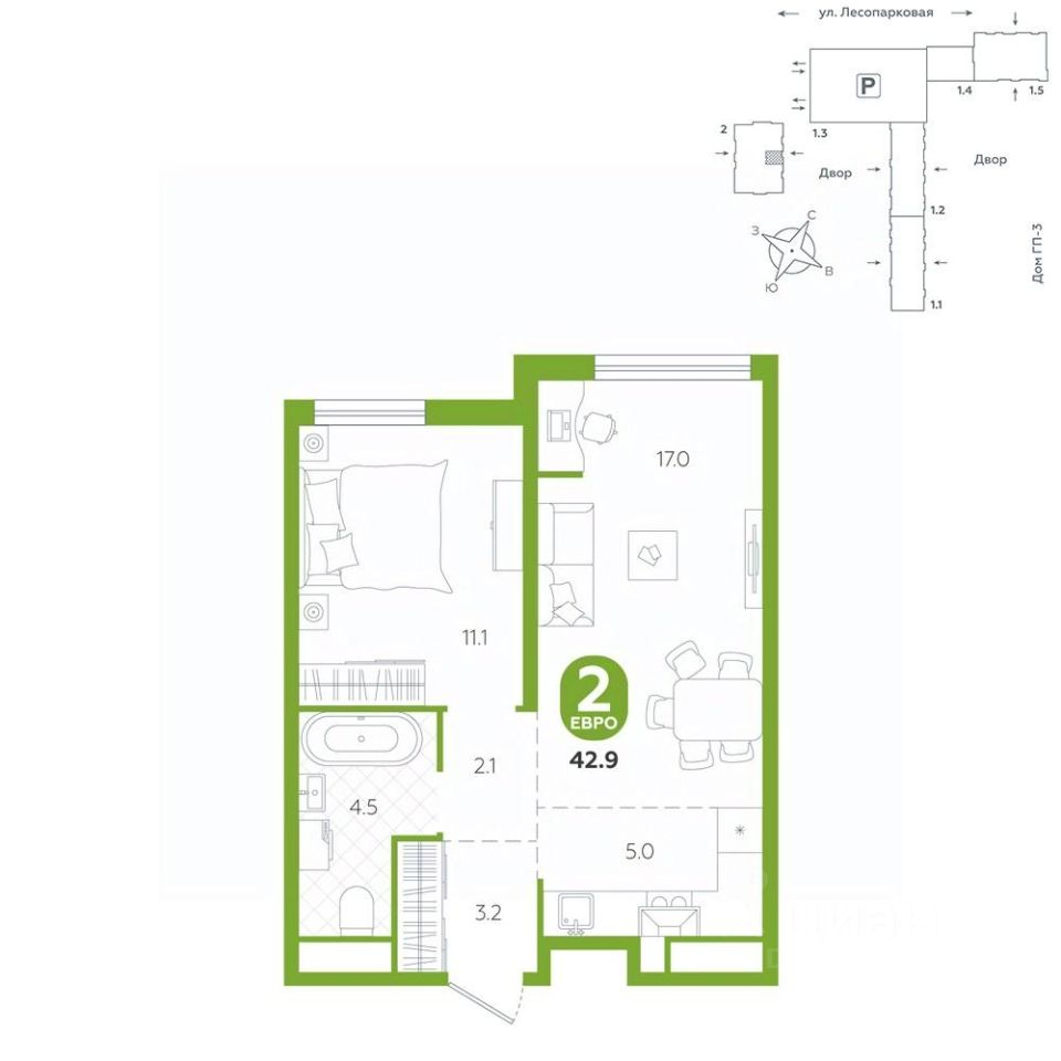 Планировка-хайфлэт с потолками 5,1 метров и отдельной спальней. В просторной кухне-гостиной выход на панорамную лоджию — окна рядом с ней в пол. Для хранения вещей в прихожей подготовлена ниша под шкаф-купе. В квартире предчистовая отделка: стены оштукатурены и выровнены по общему уровню, на полу слой цементно-песчаного раствора с дополнительным гидроизоляционным слоем в ванной. Проведена электрика и готовы розетки с выключателями. А ещё установлены сейф-двери и счётчики с телеметрией. Это не чистовая отделка, но во время ремонта будет меньше пыли. Вокруг много школ и детских садов, есть качественные клиники и большой парк для прогулок. Детские и спортивные площадки в закрытых дворах. Для машин продуман крытый паркинг для автомобилей. Он в 6 минутах ходьбы. Способы покупки: — ипотечные программы — обмен вашего жилья на новую квартиру — дистанционная покупка Узнать дополнительную информацию и записаться на встречу в офисе продаж можно по номеру, указанному в объявлении.