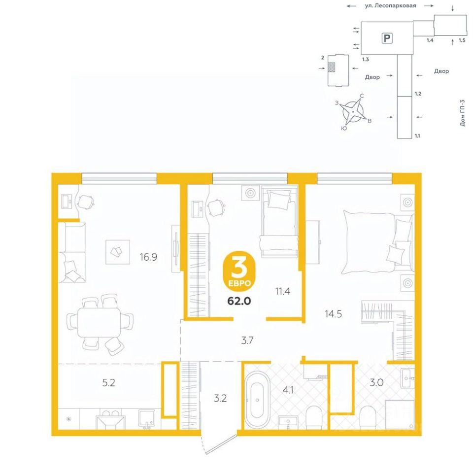 54 м² · Этаж 3 из 4