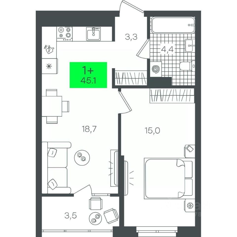 45 м² · Этаж 18 из 21