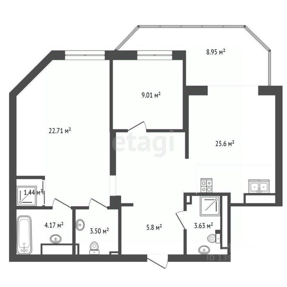 63 м² · Этаж 14 из 25