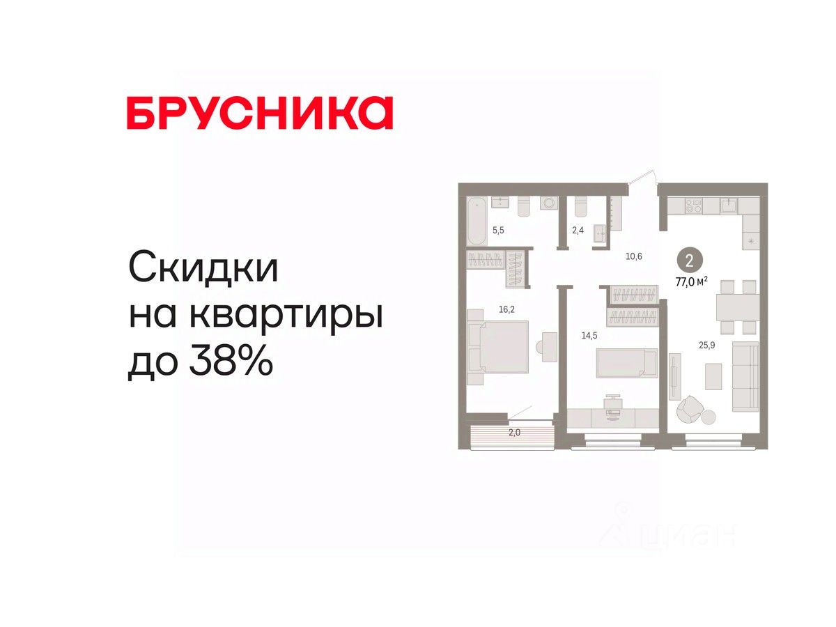 2-комн. квартира с европланировкой и предчистовой отделкой в ЖК ''Мириады'' на 6 этаже. Общая площадь: 40.1 кв.м., жилая: 21 кв.м., суммарная площадь гостиной-столовой с кухонной зоной: 15.5 кв.м. Европейская планировка, кухня-гостиная - идеальный вариант для тех, кто любит часто принимать гостей. Комнаты изолированные, все окна выходят на одну сторону. В квартире одна лоджия, один совмещенный санузел. Высота потолков 2.7 м. Дом монолитный, двухподъездный, переменной этажности, от 14 до 18 этажей. Квартира находится во 2-й секции высотой 14 этажей в корпусе ГП-72.104. На этаже 8 квартир. В подъезде 1 пассажирский и 1 грузовой лифт. Окончание строительства - 4 квартал 2025 года. Оформление сделки по договору долевого участия. Вселенная бесконечных историй. Ранее невиданный Тюмени масштаб: территория 240 гектаров и 1 650 000 м² застройки. Мириады это город масштабных перемен и больших возможностей. Город зеленых рощ и зеркальных озер. Город для работы, учебы и развлечений. Город для детей и их родителей. Город для всех и каждого. Проект расположен в районе Мыс рядом с ТРЦ ''Тюмень Сити Молл'' в границах улицы Тимофея Чаркова, Тобольского тракта и объездной дороги. Срок полного освоения территории - до 2034 года. #ZM7DcE