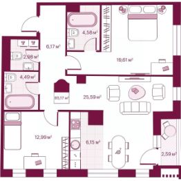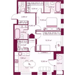 Продаётся 2-комнатная квартира в строящемся доме (Герцена, 33), срок сдачи: II-кв. 2026, общей площадью 85.15 кв.м., на 2 этаже. Новый жилой комплекс Secret Place от Специализированного застройщика ''Сикрет плэйс'' расположен по адресу: г. Тюмень, по ул. Герцена.