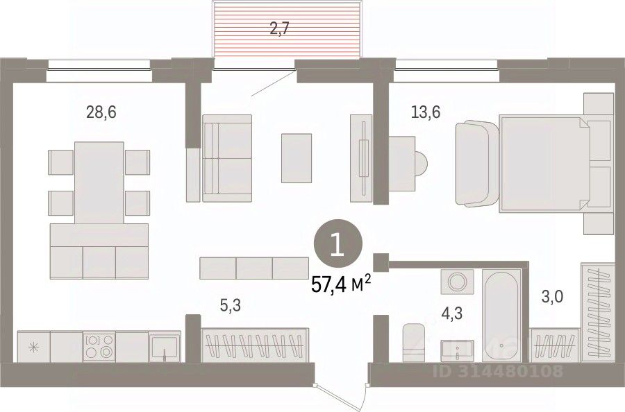 57 м² · Этаж 7 из 10