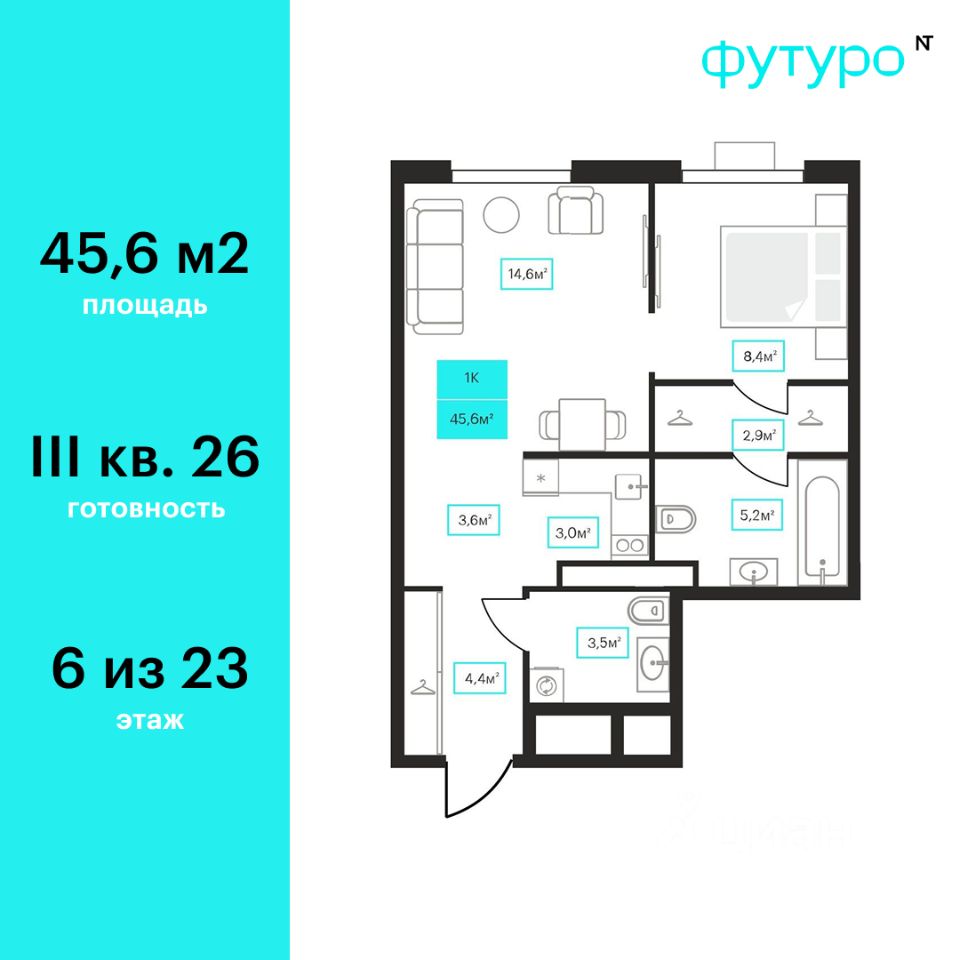 45 м² · Этаж 6 из 23