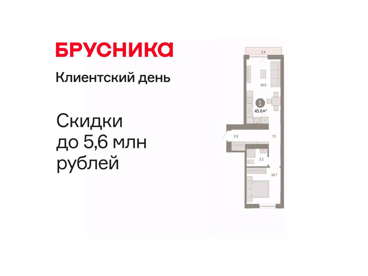 26 м² · Этаж 11 из 19