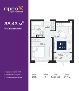 Торопитесь оформить бронирование по этой цене, предложение ограничено! Стоимость квартиры указана со скидкой, ваша экономия составит 347,353 руб. Звоните, мы вам все подробно расскажем. Однокомнатная квартира с предчистовой отделкой в ЖК ''Прео'' на 5 этаже. Общая площадь: 38.43 кв.м. Высота потолков 2.7 м. Дом монолитный, трехподъездный, переменной этажности, от 14 до 23 этажей. Квартира находится в 1-й секции высотой 23 этажа в корпусе 206. На этаже 8 квартир. В подъезде 1 пассажирский и 1 грузовой лифт. Окончание строительства - 1 квартал 2026 года. Оформление сделки по договору долевого участия. Преображенский — один из самых привлекательных районов для жизни! Это полностью самостоятельный жилой район с точки зрения инфраструктуры. Преображенский находится между Московским и Червишевским трактами в квартале улиц Закалужская — Вьюжная — Александра Протозанова. Не нужно ждать, когда появится инфраструктура — переезжайте на всё готовое. Вблизи расположены действующие школа и детский сад. В этом году откроется еще один сад, а в следующем году — школа. По соседству с Преображенским запланировано строительство городского парка ''Комарово'' площадью 38 гектар. За 10 минут можно доехать на автомобиле до крупных ТРЦ: ''Лента'', ''Кристалл'', ''Леруа Мерлен'', ''Метро'' и ''Ашан''. С 2018 года в районе открыт Соседский центр — пространство, созданное для формирования добрососедской среды, совместного досуга, общения и реализации соседских инициатив. Здесь проходят встречи соседей, а также сами жители района организовывают мероприятия. Организатором такого события может стать любой желающий. В квартирах выполнена качественная предчистовая отделка. Гладкие стены с финишным выравниванием по маякам. Ровный потолок для установки натяжного потолка. Установлены пятикамерные окна с двойным стеклопакетом (3 стекла). Дизайнерские холлы с видеонаблюдением, безбарьерным и прозрачным входом всегда светло и спокойно. На первом этаже есть просторные колясочные, где все жители могут оставлять свои коляски и велосипеды. В Преображенском есть всё, что нужно для активного отдыха и занятий спортом. Мы сделали большое футбольное поле с безопасным покрытием. Также установили хоккейный корт, который оборудован по всем необходимым стандартам. Во дворах можно делать упражнения на специальных площадках с турниками. Весь район мы обустроили велодорожками, которые связаны в единый маршрут. У нас есть сухие фонтаны, бьющие из земли, деревья, веревки, сетки, скалодром, газон, песок и резинка — осталось просто дать своему ребенку право на свободную игру. По-настоящему хорошие дворы — это те, которые дети предпочитают соцсетям и телевизору. Аккредитация в банках: ''Сбербанк России'', ОАО ''Альфа-Банк'', ПАО ''Газпромбанк'', ПАО Банк ''ВТБ'', ПАО ''Банк Уралсиб'' и других. #Z6DflZ