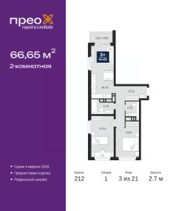 Успейте оформить бронирование, пока действует скидка, срок акции ограничен! Стоимость квартиры указана со скидкой, ваша экономия составит 427,000 руб. Информация по телефону, мы вам все подробно расскажем. Просторная 2-комн. квартира с предчистовой отделкой в ЖК ''Прео'' на 2 этаже. Общая площадь: 66.25 кв.м. Высота потолков 2.7 м. Квартира находится в корпусе 212. Дом монолитный, одноподъездный, высотой 21 этаж. На этаже 8 квартир. В подъезде 2 пассажирских и 1 грузовой лифт. Окончание строительства - 4 квартал 2026 года. Оформление сделки по договору долевого участия. Преображенский — один из самых привлекательных районов для жизни! Это полностью самостоятельный жилой район с точки зрения инфраструктуры. Преображенский находится между Московским и Червишевским трактами в квартале улиц Закалужская — Вьюжная — Александра Протозанова. Не нужно ждать, когда появится инфраструктура — переезжайте на всё готовое. Вблизи расположены действующие школа и детский сад. В этом году откроется еще один сад, а в следующем году — школа. По соседству с Преображенским запланировано строительство городского парка ''Комарово'' площадью 38 гектар. За 10 минут можно доехать на автомобиле до крупных ТРЦ: ''Лента'', ''Кристалл'', ''Леруа Мерлен'', ''Метро'' и ''Ашан''. С 2018 года в районе открыт Соседский центр — пространство, созданное для формирования добрососедской среды, совместного досуга, общения и реализации соседских инициатив. Здесь проходят встречи соседей, а также сами жители района организовывают мероприятия. Организатором такого события может стать любой желающий. В квартирах выполнена качественная предчистовая отделка. Гладкие стены с финишным выравниванием по маякам. Ровный потолок для установки натяжного потолка. Установлены пятикамерные окна с двойным стеклопакетом (3 стекла). Дизайнерские холлы с видеонаблюдением, безбарьерным и прозрачным входом всегда светло и спокойно. На первом этаже есть просторные колясочные, где все жители могут оставлять свои коляски и велосипеды. В Преображенском есть всё, что нужно для активного отдыха и занятий спортом. Мы сделали большое футбольное поле с безопасным покрытием. Также установили хоккейный корт, который оборудован по всем необходимым стандартам. Во дворах можно делать упражнения на специальных площадках с турниками. Весь район мы обустроили велодорожками, которые связаны в единый маршрут. У нас есть сухие фонтаны, бьющие из земли, деревья, веревки, сетки, скалодром, газон, песок и резинка — осталось просто дать своему ребенку право на свободную игру. По-настоящему хорошие дворы — это те, которые дети предпочитают соцсетям и телевизору. Аккредитация в банках: ПАО ''Банк Уралсиб'', ''Сбербанк России'', ОАО ''Альфа-Банк'', ПАО Банк ''ВТБ'', ПАО ''Газпромбанк'' и других. #ZMe0ud