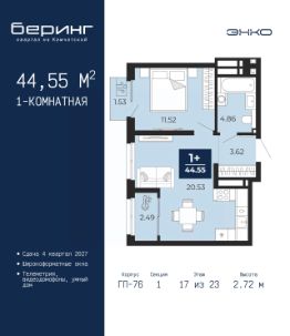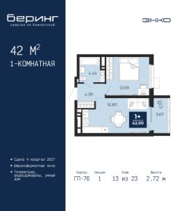 Спешите забронировать по этой цене, период предложения ограничен! Стоимость квартиры указана со скидкой, ваша экономия составит 454,000 руб. По всем вопросам звоните в офис продаж, наши менеджеры вам все расскажут. Продается трехкомнатная квартира от застройщика в ЖК ''Беринг'' на 18 этаже. Общая площадь: 79.9 кв.м. Высота потолков 2.72 м. Дом монолитный, многоподъездный, переменной этажности, от 17 до 24 этажей. Квартира находится в 5-й секции высотой 19 этажей в корпусе ГП-75. На этаже 4 квартиры. В подъезде 2 пассажирских и 1 грузовой лифт. Окончание строительства - 4 квартал 2027 года. Оформление сделки по договору долевого участия. Подобно знаменитому исследователю, мы чувствуем себя первооткрывателями этой локации. Хотим показать новую суть места, сформировать для вас жизненный опыт, которого ещё не было. Беринг — район зелёного цвета. Беринг — район, который откроется вам с другой стороны. Впечатлит новым уровнем комфорта и качеством жизни. Беринг — открытие на карте города. Первый квартал расположен в районе Тура, в границах улиц: Камчатская Западносибирская Энтузиастов. Вокруг уже есть всё для того, чтобы ежедневная рутина была лишь частью жизни и не доставляла дискомфорта.Школы и детские сады, магазины и аптеки, поликлиника, места для семейного отдыха, пеших и велопрогулок, и даже рыбалки. Масштабное озеленение дворов — визитная карточка ЭНКО и ваш оазис спокойствия, чтобы отвлечься от повседневности. Раскидистые деревья, кустарники, травы и цветы — осталось остановиться, вдохнуть и расслабиться, глядя на эту природную красоту. Стилистика подъездов продолжает концепцию Беринга, вдохновлённого Камчаткой: сдержанный,но при этом впечатляющий дизайн соседствует с удобством и функциональностью. #ZmeOfO