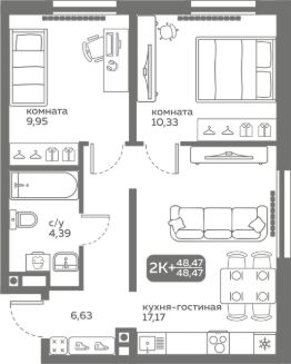 При покупке этой квартиры за наличный расчет предоставляется скидка 5%Прямая продажа от застройщика! Продается двухкомнатная квартира в строящемся ЖК ''Меридиан Слобода'', срок сдачи: I-кв. 2027, общей площадью 48.47 м², на 9 этаже из 20. Площадь кухни — 17.17 м². ''Меридиан Слобода'' расположен в южной части (зеленой зоне) Тюменской Слободы рядом со строящимся Комарово парком в границах улиц Заполярная и Спасская. В районе расположены все необходимые объекты социальной инфраструктуры.ЖК ''Меридиан Слобода'' состоит из двух домов переменной этажности от 15 до 20 с отделкой фасадов разной фактуры.Главная особенность ЖК — свой собственный хвойный сквер прямо во дворе. Территория сквера будет оформлена в минималистичном стиле, главное правило которого сохранение экосистемы и гармоничное встраивание объектов инфраструктуры в природную среду. Здесь будут дорожки из деревянных настилов, зоны отдыха, отель для птиц.Квартиры сдаются с предчистовой отделкой или с ремонтом. О возможности приобретения квартиры с ремонтом уточняйте у менеджеров отдела продаж.Преимущества ЖК:— тёплый тамбур с домофоном на второй двери— дизайнерское оформление подъездов— колясочная и парковка для велосипедов— лапомойка— кладовые на цокольном этаже со входом через подъезд— закрытый двор— зоны для игр и спорта во дворе Квартира продается с чистовой отделкой.