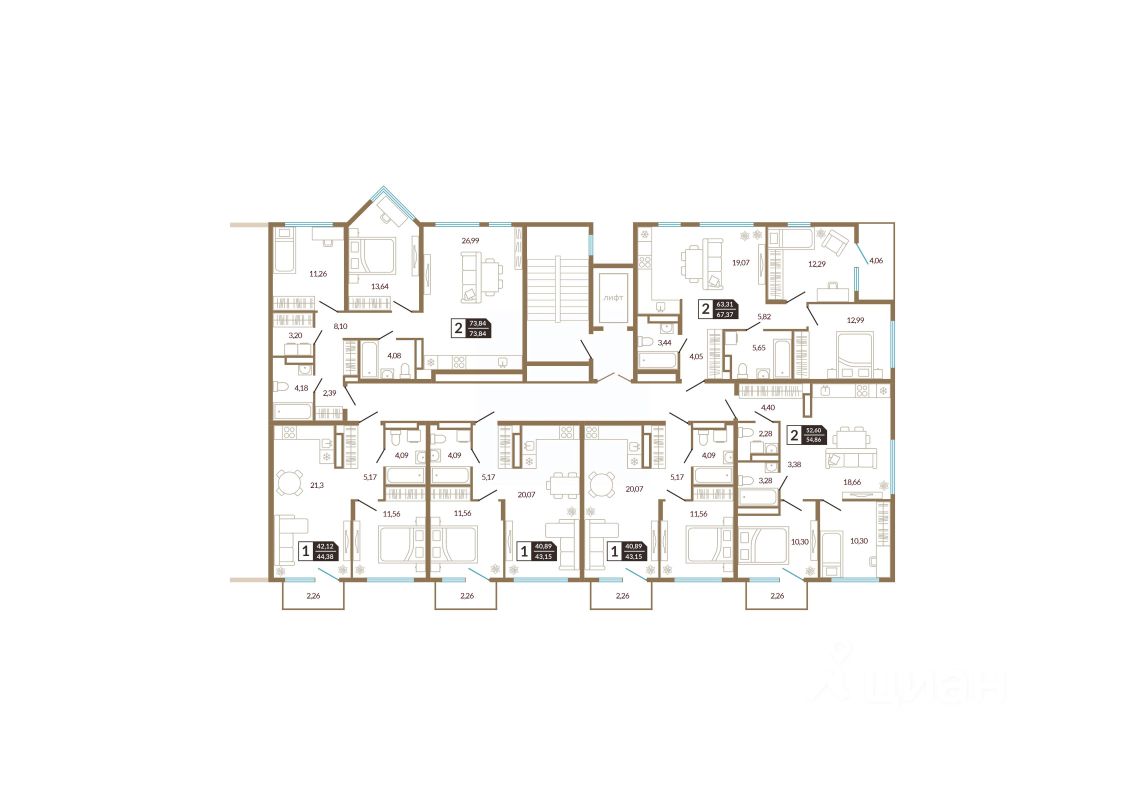 34 м² · Этаж 2 из 8