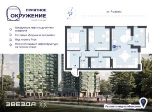 ЖК ''Приятное окружение'' комфорт-класса сочетает лаконичную архитектуру, продуманное благоустройство и эргономичные планировки. Двухсекционный дом с переменной этажностью расположен в уникальном месте: с одной стороны — дамба, с другой — зелёные массивы.Важно, что на стороне дамбы не предусмотрено строительство новых домов, а значит, из окон комплекса всегда будут открываться живописные виды на природный ландшафт. Есть квартиры с панорамными окнами и видами на набережную и мост Влюбленных. А в праздничные дни можно любоваться фейерверками, не выходя из дома.
