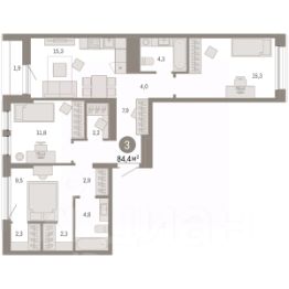 Торопитесь забронировать по акционной цене! Период акции ограничен! Стоимость квартиры указана со скидкой, ваша экономия составит 3,640,000 RUB. По всем вопросам обращайтесь в офис продаж, наши менеджеры вам все расскажут! Просторная 3-комн. квартира с предчистовой отделкой в Кварталы ''На Минской'' на 3 этаже. Общая площадь: 84.16 кв.м. Высота потолков 2.7 м. Дом монолитный, многоподъездный, переменной этажности, от 7 до 16 этажей. Квартира находится в 4-й секции высотой 7 этажей в корпусе 1. На этаже 5 квартир. В подъезде 1 грузовой лифт. Окончание строительства - 4 квартал 2026 года. Оформление сделки по договору долевого участия. Квартира с кухней-гостиной и тремя спальнями в кварталах ''На Минской''. Особенности планировки: балкон, предчистовая отделка, разнесённые спальни. квартиры в нашей базе: МНС01-Ж4.3.5. В сердце города Кварталы ''На Минской'' находятся в самом центре. За десять минут можно дойти до площади 400-летия Тюмени и Большого Драматического театра, Тюменского индустриального и медицинского университетов, спортивного комплекса ''Строймаш'', ТРЦ ''Гудвин'' и ''Премьер'', Тюменского технопарка. Поблизости много детских садов, школ и поликлиник. Пространство разного опыта Создавая кварталы ''На Минской'' мы вдохновлялись Хакскими дворами в Берлине и улицей Давида Агмашенебели в Тбилиси. И первые и вторая — яркие разнообразные пространства, сформированные прогрессивными архитекторами и притягивающие городских интеллектуалов. Престижная недвижимость здесь соседствует с барами, ресторанами, креативными кластерами и бюро, дизайнерскими лавками. Полезные улицы Кварталы ''На Минской'' свяжет сеть променадов, автомобильных проездов и велодорожек. Уличный фронт проекта мы сформируем с помощью аллейной посадки деревьев. Они создадут тень для ресторанов и кафе на первых этажах, визуально отделят проезжую и пешеходную части, снизят объём пыли и уровень шума. Мы реализуем проект в районе с развитой базовой инфраструктурой. И поэтому тщательно подошли к программированию коммерции, посчитав, что её основная задача — ''закрывать'' более высокие потребности жителей. Здесь может появиться пекарня с вкусными круассанами, турагентство на случай, если захочется перезимовать в Сочи, массажный кабинет, ресторан, когда надоело есть дома и многое другое. #2S5C9d
