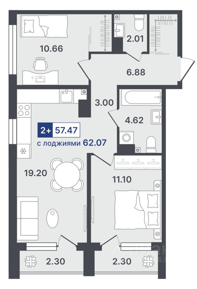 63 м² · Этаж 10 из 19