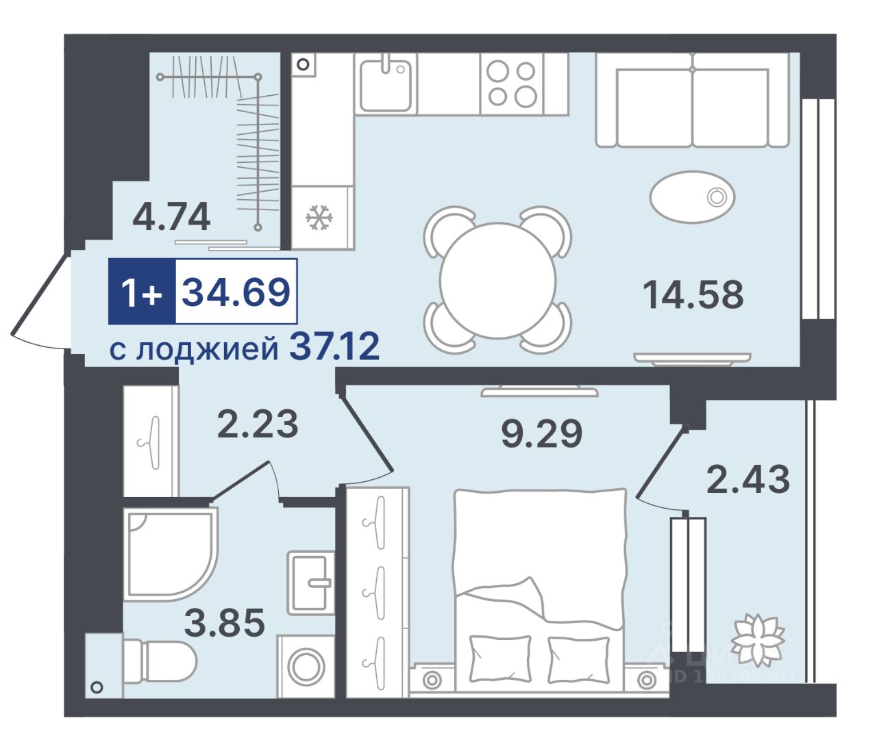 38 м² · Этаж 15 из 19