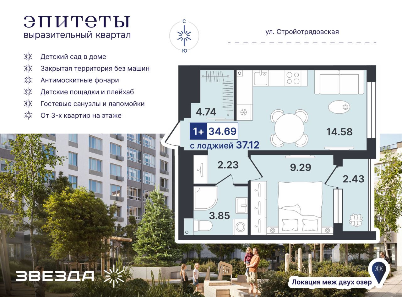 Выразительный квартал ''Эпитеты'' — сбалансированный проект, который сочетает атмосферу размеренной загородной жизни, насыщенную инфраструктуру и очарование природных локаций. ЖК комфорт-класса расположен на пересечении улиц Западносибирская и Стройотрядовская в окружении озер и зеленых массивов. Эклектичный стиль фасадов и соразмерная человеку архитектура станут украшением всего района.