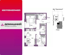 Объявление от застройщика Страна Девелопмент. Покупка квартиры защищена банком.Продается 3комнатная квартира на 3 этаже от застройщика Страна Девелопмент. Площадь квартиры 58,94 кв. м.О ПРOЕКТЕMикpорайон ''Домaшний'' — этo 6 очередей стpоитeльcтвa, 24 дома пеpемeннoй этажнoсти. Каждый дом уникальный.Внутри микрорайона появится огромный пешеходный бульвар — бульвар Традиций. Центром притяжения станут открытые пространства для отдыха жителей и гостей микрорайона, которые легко меняются под сезонные сценарии отдыха: новогодняя елка, ярмарки, кинопоказы и т.д.У каждого дома обустроен приватный двор с зонами для активного и спокойного отдыха. В активной зоне детские разновозрастные площадки с горками, песочницами и качелями, воркаут-зоны. В спокойной — скамейки, мини-амфитеатры, закрытые перголы. Уютной атмосферу сделает обильное озеленение и освещение ''домашними'' торшерами.ОТДЕЛКАКвартиры сдаются с предчистовой отделкой. Все грязные работы выполнены: произведена разводка электричества и отопления, выполнена стяжка пола, стены выровнены ''под маяк''. В квартире установлены розетки, выключатели и радиаторы. На входе — надежная стальная дверь. Вам остается только выбрать материалы и начать ремонтДоступна опция ''Ремонт от застройщика''. Стоимость можно включить в ипотеку. КУХНЯ С ТЕХНИКОЙТеперь дополнительно к ремонту можно заказать кухню со встроенной техникой. Эргономику и функциональное наполнение разработали под каждую планировку.ПОЛНАЯ МЕБЛИРОВКАБольше не нужно тратить время даже на подбор, доставку и сборку мебели.Вы можете включить в стоимость квартиры с ремонтом полную меблировку.- Что входит в меблировку?- Кухня с техникой и сантехникой- Диван- Кровать- Шкаф в спальне- Шкаф в прихожейНа консультации менеджер подскажет, какие акции действуют, и как получить одобрение по ипотеке с низкой ставкой. Более подробная информация по телефону.Застройщик ООО СЗ ''Страна Запад''. Проектные декларации на сайте наш.дом.рф.