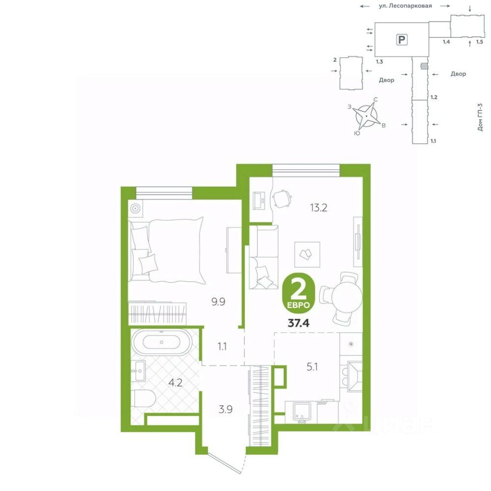 Квартира располагается в ГК ''Чистые Пруды'' от ''Паритет девелопмент''. Это флагманский проект компании в Тюмени. Расположение вдали от шумных улиц и оживленного центра создает ощущение жизни на природе и окружает тишиной и спокойствием. Есть вся необходимая социальная и коммерческая инфраструктура: магазины и сфера услуг на первых этажах. Школы, сады, поликлиника, парки в шаговой доступности. Квартал строится в районе Новой Лесобазы. Рядом выезд на объездную, что существенно экономит время. Поездка до центра города на автомобиле занимает 15-20 минут. Городские кварталы ''Чистые Пруды'' сформирован из домов переменной этажности и многоуровневых паркингов. Ввод 1 очереди строительства запланирован на II кв. 2028 года. Всё благоустройство квартала представлено двумя функциональными зонами: приватная внутри дворовая и общественная. Каждый закрытый двор имеет выход на единую променадную зону - бульвар. Концепция благоустройства основана на принципе модульности, что формирует основную идею приватности. Приватность проекта подчеркивает его особенный климат внутри. Модульное благоустройство позволит максимально эффективно использовать пространство двора и удовлетворить потребности различных категорий жителей. В квартирах базово выполнена улучшенная черновая отделка, которая включает в себя: выровненные стены, стяжка пола с шумоизоляцией, горизонтальная разводка отопления, установлены счетчики с телеметрией, окна с 5-камерным профилем и надежные входные двери. При желании можно добавить ремонт от застройщика и включить его в стоимость ипотеки, что позволит сэкономить на стройматериалах и переехать сразу после получения ключей. Характеристики квартиры: этаж - 11 количество комнат - 2 номер помещения - 235 площадь квартиры - 37,4 кв.мГармоничные пропорции и большие окна наполняют пространство светом, создавая уютную атмосферу. Умное зонирование позволяет удобно организовать как рабочую, так и жилую зоны, что особенно важно для современных жителей. Санузел спроектирован с учетом всех потребностей: здесь есть ванна и место для стиральной машины. Каждый метр квартиры используется с максимальной эффективностью, что делает эту планировку отличным выбором для тех, кто ценит комфорт и удобство.