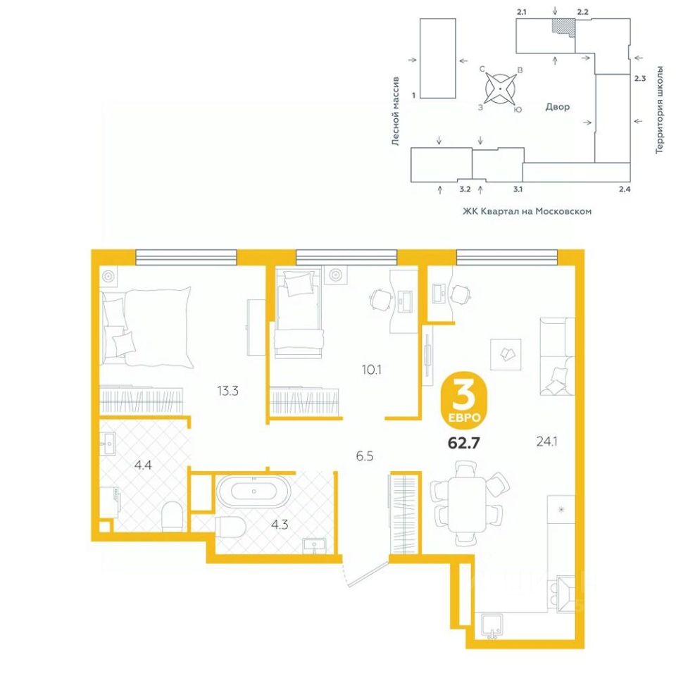 Квартира располагается в ГК ''Чистые Пруды'' от ''Паритет девелопмент''. Это флагманский проект компании в Тюмени. Расположение вдали от шумных улиц и оживленного центра создает ощущение жизни на природе и окружает тишиной и спокойствием. Есть вся необходимая социальная и коммерческая инфраструктура: магазины и сфера услуг на первых этажах. Школы, сады, поликлиника, парки в шаговой доступности. Квартал строится в районе Новой Лесобазы. Рядом выезд на объездную, что существенно экономит время. Поездка до центра города на автомобиле занимает 15-20 минут. Городские кварталы ''Чистые Пруды'' сформирован из домов переменной этажности и многоуровневых паркингов. Ввод 1 очереди строительства запланирован на II кв. 2028 года. Всё благоустройство квартала представлено двумя функциональными зонами: приватная внутри дворовая и общественная. Каждый закрытый двор имеет выход на единую променадную зону - бульвар. Концепция благоустройства основана на принципе модульности, что формирует основную идею приватности. Приватность проекта подчеркивает его особенный климат внутри. Модульное благоустройство позволит максимально эффективно использовать пространство двора и удовлетворить потребности различных категорий жителей. В квартирах базово выполнена улучшенная черновая отделка, которая включает в себя: выровненные стены, стяжка пола с шумоизоляцией, горизонтальная разводка отопления, установлены счетчики с телеметрией, окна с 5-камерным профилем и надежные входные двери. При желании можно добавить ремонт от застройщика и включить его в стоимость ипотеки, что позволит сэкономить на стройматериалах и переехать сразу после получения ключей. Характеристики квартиры: этаж - 16 количество комнат - 3 номер помещения - 432 площадь квартиры - 58,6 кв.мГармоничные пропорции и большие окна наполняют пространство светом, создавая уютную атмосферу. Умное зонирование позволяет удобно организовать как рабочую, так и жилую зоны, что особенно важно для современных жителей. Санузел спроектирован с учетом всех потребностей: здесь есть ванна и место для стиральной машины. Каждый метр квартиры используется с максимальной эффективностью, что делает эту планировку отличным выбором для тех, кто ценит комфорт и удобство.