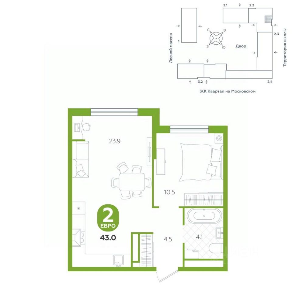 43 м² · Этаж 4 из 15