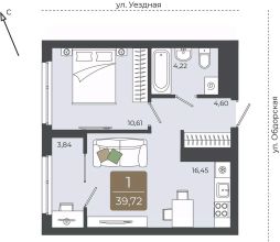 Однокомнатная квартира в ЖК ''Мидгард на Уездной'' на 6 этаже. Квартира без отделки, новый собственник может сделать ремонт по своему дизайн-проекту. Общая площадь: 39.72 кв.м., жилая: 10.61 кв.м., площадь просторной кухни-столовой: 16.45 кв.м. Все окна выходят на одну сторону. В квартире одна лоджия, один совмещенный санузел. Высота потолков 2.72 м. Дом монолитный, черырехподъездный, переменной этажности, от 9 до 15 этажей. Квартира находится в 3-й секции высотой 15 этажей в корпусе ГП-1. На этаже 8 квартир. В подъезде 1 пассажирский и 1 грузовой лифт. Окончание строительства - 3 квартал 2027 года. Оформление сделки по договору долевого участия. ''Мидгард на Уездной'' - современный проект комфорт-класса, расположенный на первой линии Тюменской слободы, с видом на развязку Московского тракта. Он сочетает в себе современные архитектурные решения и комфортное проживание в гармонии с природой. Жилой комплекс находится в перспективном районе, который отличается транспортной доступностью: до крупных торговых центров ''Кристалл'' и ''Колумб'' можно добраться за 10 минут, а до центра города - за 15 минут. В шаговой доступности школы, детские сады, торговые центры и парки, что делает локацию идеальной для комфортной жизни. Проектом предусмотрены дома с дизайнерскими входными зонами и планировочными решения для любого сценария жизни с возможностью включить в ипотечный платеж ремонт, мебель и технику от застройщика. Закрытый двор и собственная аллея вдоль жилого комплекса позволят насладиться тишиной вдали от суеты большого города. #z6eTft