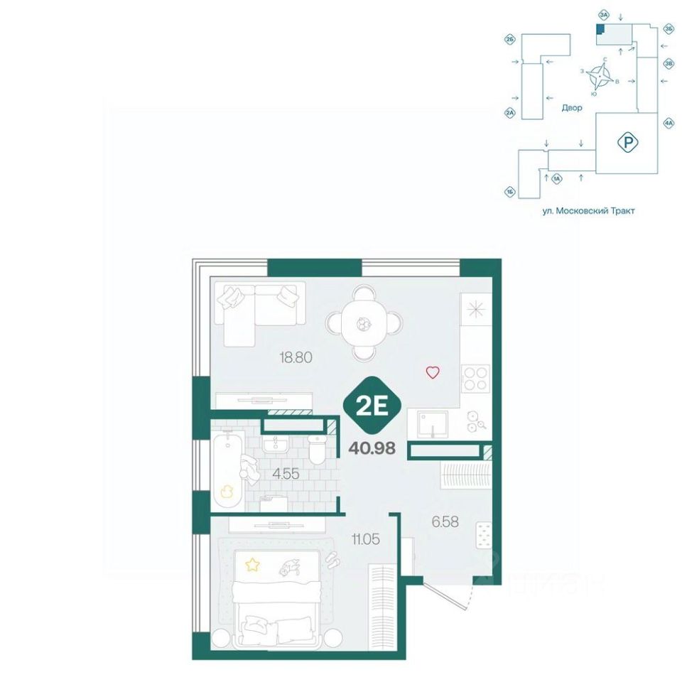 Квартира в квартале ''Дружеский'' на улице Кремлёвской рядом с Московским трактом. Здесь два дома разной этажности — они объединены приватным двором без машин. Вместо них зоны отдыха и детские площадки из натуральных материалов. Рядом супермаркеты с пунктами выдачи, новая школа и торговый центр ''Колумб''. Планировка в европейском формате с просторной спальней. В ней и в прихожей — ниши для хранения. В спальне два окна, которые выходят на разные стороны. В квартире предчистовая отделка: стены оштукатурены и выровнены по общему уровню, на полу слой цементно-песчаного раствора с дополнительным гидроизоляционным слоем в ванной. Проведена электрика и готовы розетки с выключателями. А ещё установлены сейф-двери и счётчики с телеметрией. Для жителей дома работает приложение. Там можно оплатить счета, написать управляющей компании и позвать мастера на дом. За него не нужно платить или оформлять подписки — просто установить и зарегистрироваться. С этим поможет управляющая при получении ключей. Узнать дополнительную информацию и записаться на встречу в офисе продаж можно по номеру, указанному в объявлении.