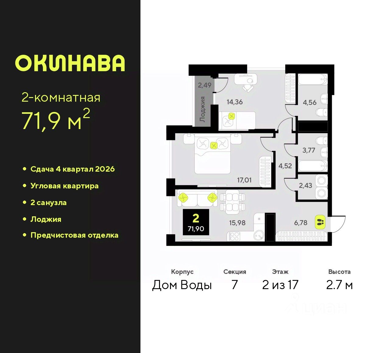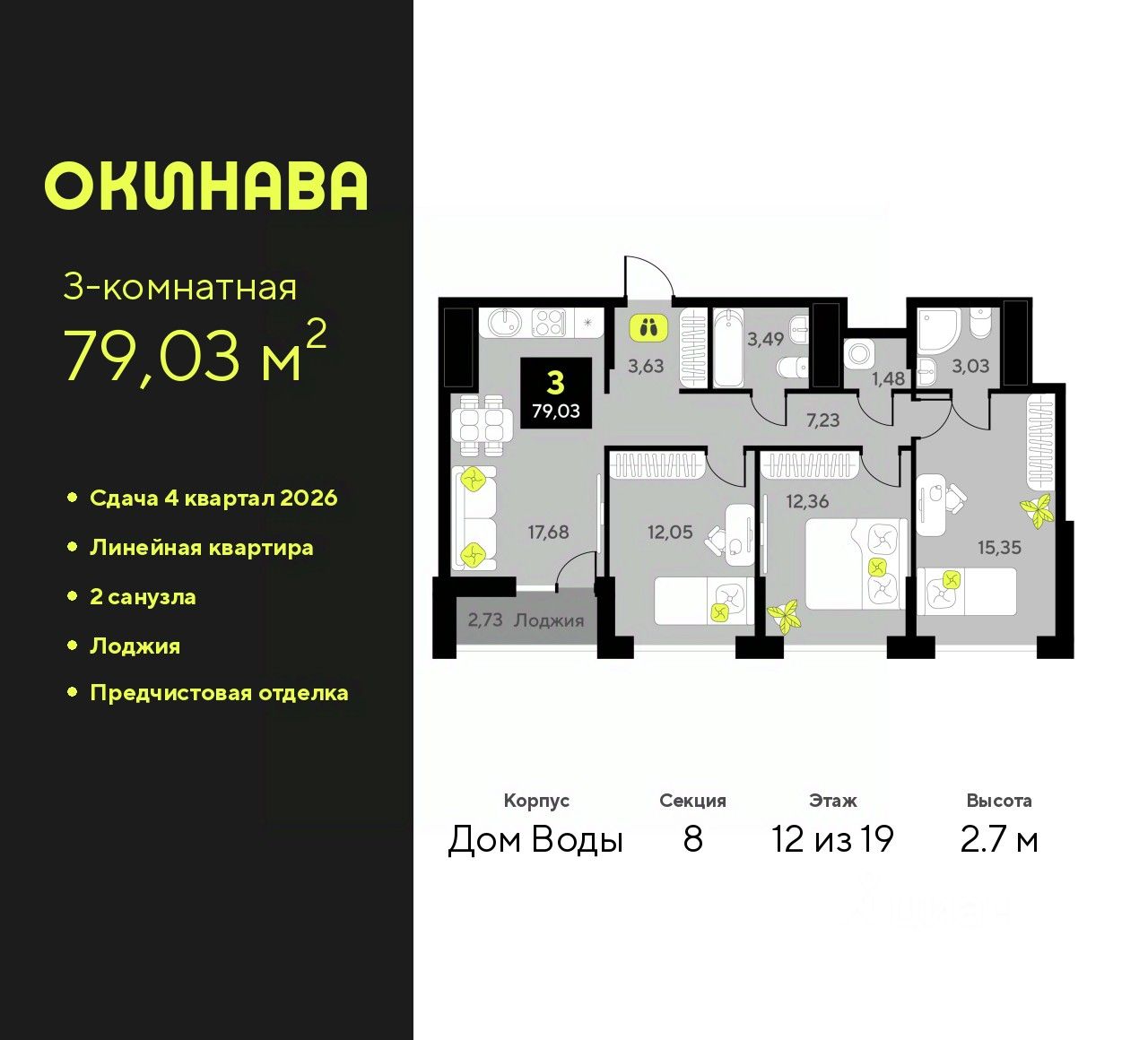 Квартира правильной формы с нишей для кухни: в гостиной будет место для отдыха и столовой зоны. Ниши под шкафы для хранения вещей в спальне и холле. Внутри готова предчистовая отделка: стены оштукатурены и выровнены по общему уровню, на полу слой цементно-песчаного раствора с дополнительным гидроизоляционным слоем в ванной. Проведена электрика и готовы розетки с выключателями. А ещё установлены сейф-двери и счётчики с телеметрией. Рядом всё, что нужно: Гилёвская роща в 7 минутах на машине, школа и детский сад в пешей доступности, кафе, пункты выдачи и пешеходная аллея возле дома. Способы покупки:— ипотечные программы— обмен вашего жилья на новую квартиру— дистанционная покупкаУзнать дополнительную информацию и записаться на встречу в офисе продаж можно по номеру, указанному в объявлении.