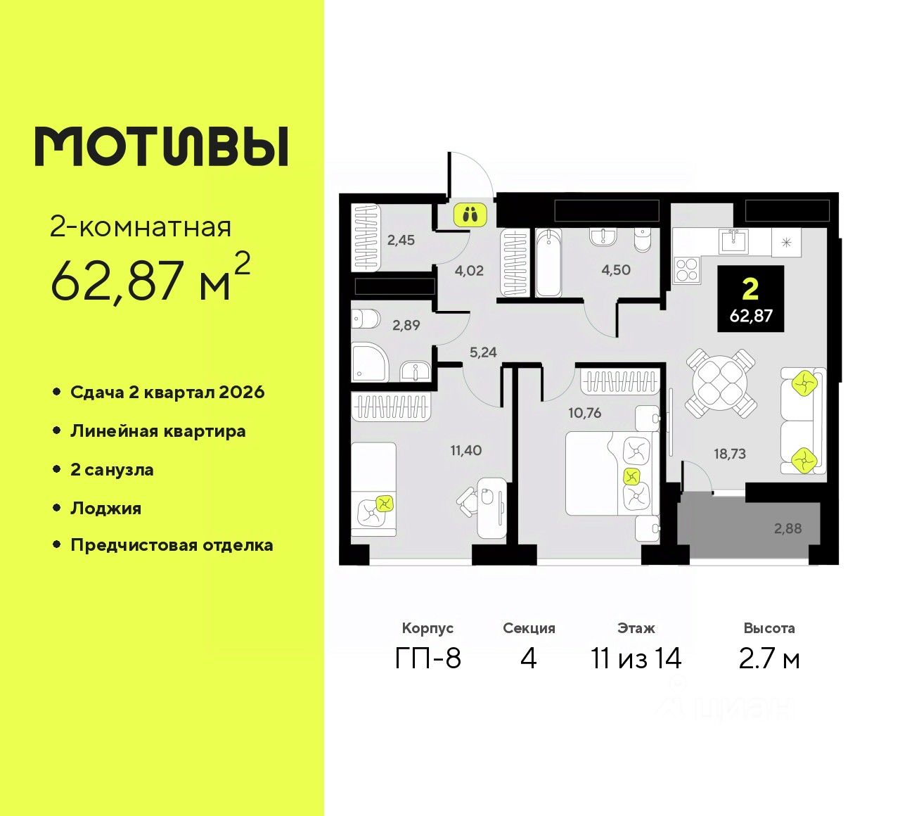 Просторная квартира с большой гардеробной 5,8 м² в спальне. В кухне достаточно места для готовки и размещения обеденной зоны.Внутри готова предчистовая отделка: стены оштукатурены и выровнены по общему уровню, на полу слой цементно-песчаного раствора с дополнительным гидроизоляционным слоем в ванной. Проведена электрика и готовы розетки с выключателями. А ещё установлены сейф-двери и счётчики с телеметрией. Рядом всё, что нужно: Гилёвская роща в 7 минутах на машине, школа и детский сад в пешей доступности, кафе, пункты выдачи и пешеходная аллея возле дома. Способы покупки:— ипотечные программы— обмен вашего жилья на новую квартиру— дистанционная покупкаУзнать дополнительную информацию и записаться на встречу в офисе продаж можно по номеру, указанному в объявлении.