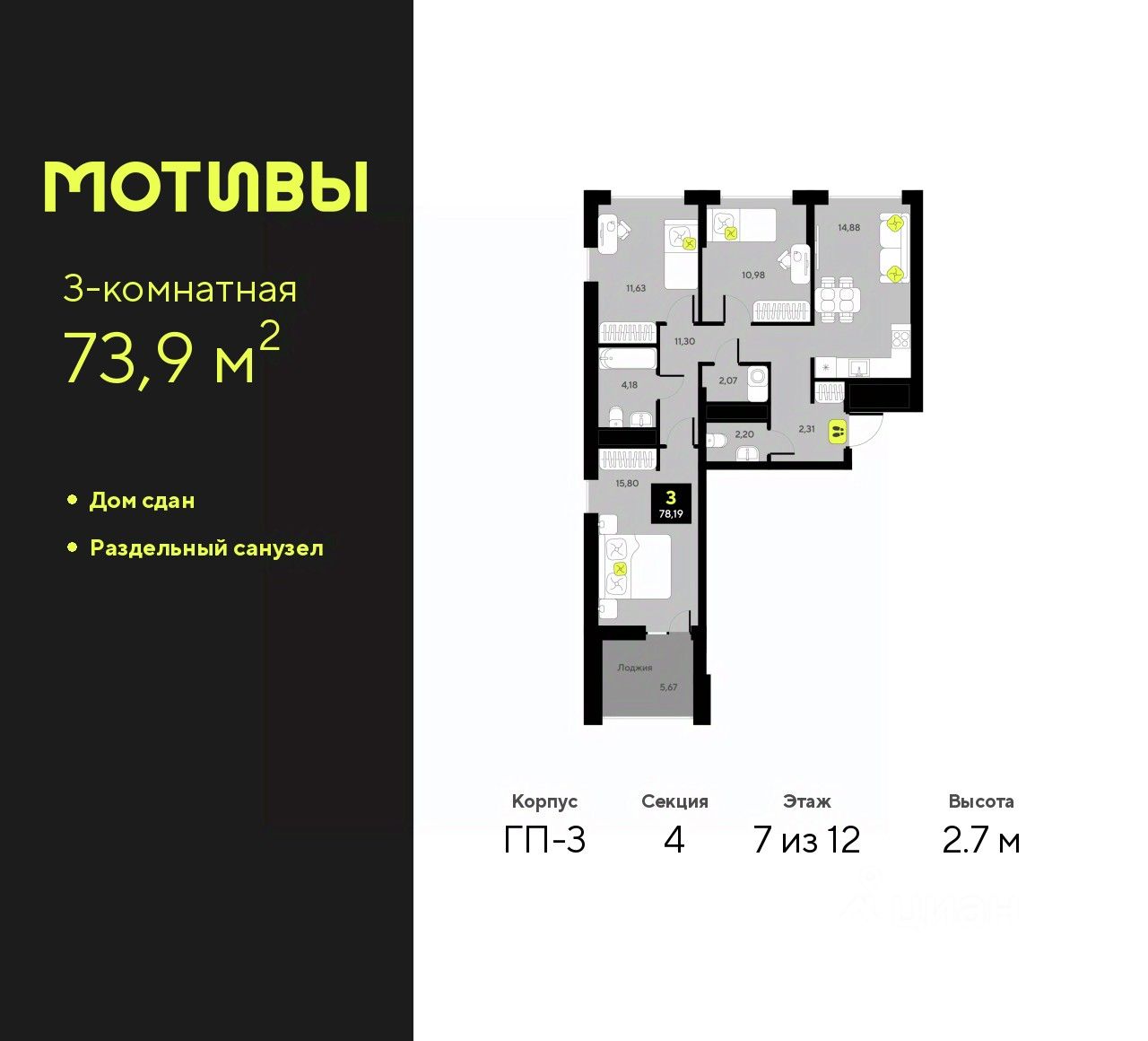 Планировка с отдельной детской комнатой и кухней-гостиной. Дополнительное место для хранении в прихожей. В спальне ниша под шкафы и выход на угловую панорамную лоджию — больше угол обзора.В квартире предчистовая отделка: стены оштукатурены и выровнены по общему уровню, на полу слой цементно-песчаного раствора с дополнительным гидроизоляционным слоем в ванной. Проведена электрика и готовы розетки с выключателями. А ещё установлены сейф-двери и счётчики с телеметрией. Это не чистовая отделка, но во время ремонта будет меньше пыли. Вокруг много школ и детских садов, есть качественные клиники и большой парк для прогулок. Детские и спортивные площадки в закрытых дворах. Для машин продуман крытый паркинг для автомобилей. Он в 6 минутах ходьбы.Способы покупки:— ипотечные программы— обмен вашего жилья на новую квартиру— дистанционная покупкаУзнать дополнительную информацию и записаться на встречу в офисе продаж можно по номеру, указанному в объявлении.