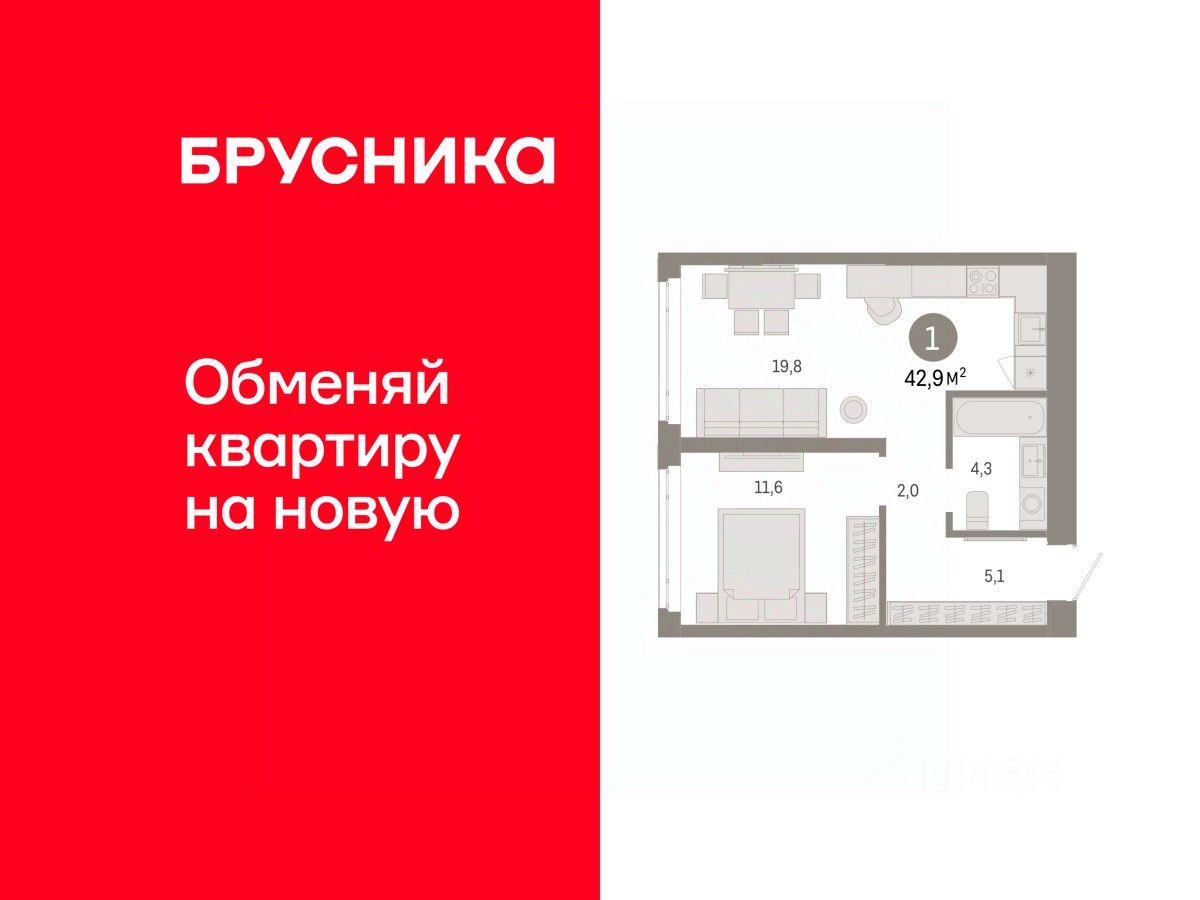 Однокомнатная квартира от застройщика с предчистовой отделкой в ЖК ''Республики 205'' на 10 этаже. Общая площадь: 42.87 кв.м. Высота потолков 2.7 м. Купить квартиру можно с помощью программ покупки от застройщика Брусника: - ипотека по эксклюзивной ставке с помощью в получении положительного кредитного решения через сервис ипотечный брокер, - квартиры в рассрочку без процентов от застройщика Брусника, - обмен квартиры на новую. Получить одобрение ипотеки или рассрочку, а также осуществить обмен квартир можно онлайн. Дом монолитный, многоподъездный, переменной этажности, от 7 до 25 этажей. Квартира находится в 1-й секции высотой 25 этажей в корпусе 3-1. На этаже 8 квартир. В подъезде 2 пассажирских и 1 грузовой лифт. Окончание строительства - 1 квартал 2027 года. Оформление сделки по договору долевого участия. Район Проект расположен в границах улиц Пермякова, Энергетиков, Воровского и Республики. До центра города — 10 минут на машине. Рядом — автомобильная развязка на пересечении улиц Пермякова и Республики. В шаговой доступности есть школы, детские сады, поликлиники, крупный торговый центр, автовокзал и несколько скверов. Проект ''Республики 205'' — это проект комплексного развития территории, уникальный по своему наполнению. Переосмысляя бывшую территорию завода медицинского оборудования, мы создадим новое место силы — микрорайон, насыщенный деловой, развлекательной, рекреационной, игровой, образовательной и медицинской инфраструктурой. До каждого полезного сервиса здесь можно будет дойти за 15 минут. Локальными центрами ''Республики 205'' будут общественные пространства — скверы, парки, бульвары и площади. В границах нашего участка мы намерены разместить школу, рассчитанную на 1550 учеников, два детских сада на 300 мест и встроенный детский сад на 100 мест. В одном из цехов бывшего завода расположится креативный кластер ''Кузница''. Он станет площадкой для нескольких институций — галереи, лектория, книжного магазина-библиотеки, кинобара и точек креативного pop-up-ритейла. Пешеходные бульвары внутри района соединят между собой улицу ресторанов, детские и спортивные площадки, событийную площадь и летний кинотеатр. Идентификатор квартиры по базе застройщика: РСП03. #ZmA676