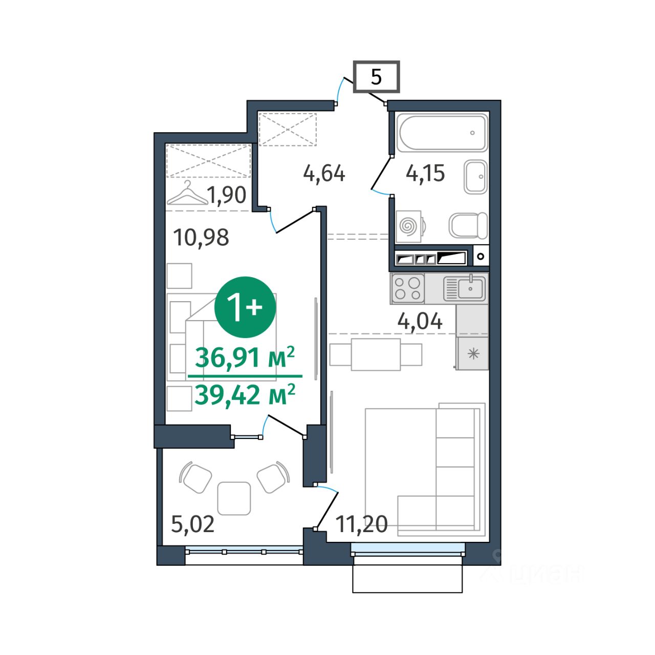 39 м² · Этаж 4 из 15