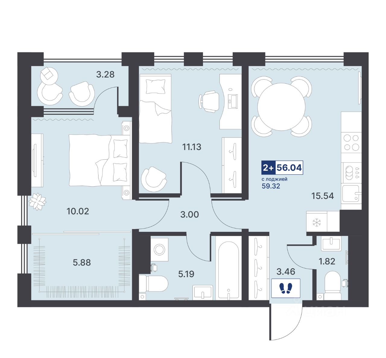 56 м² · Этаж 2 из 14