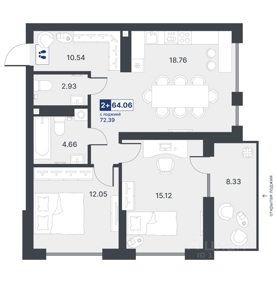 64 м² · Этаж 18 из 19