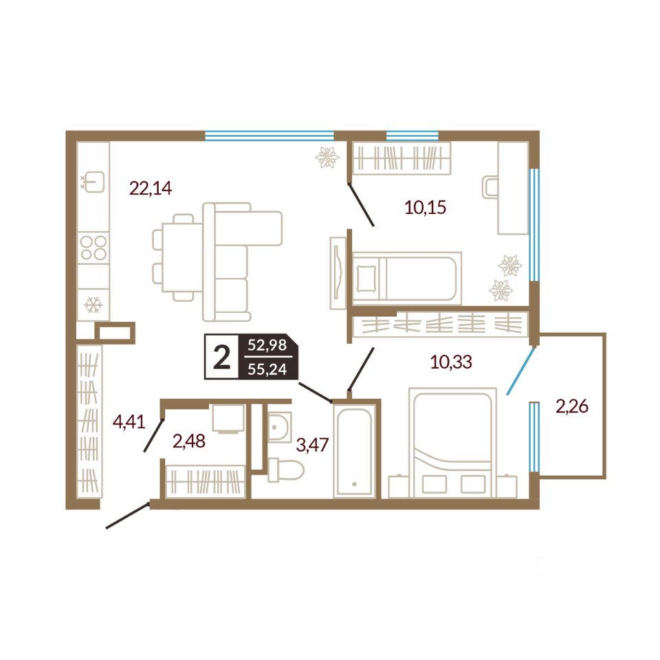 55 м² · Этаж 2 из 4