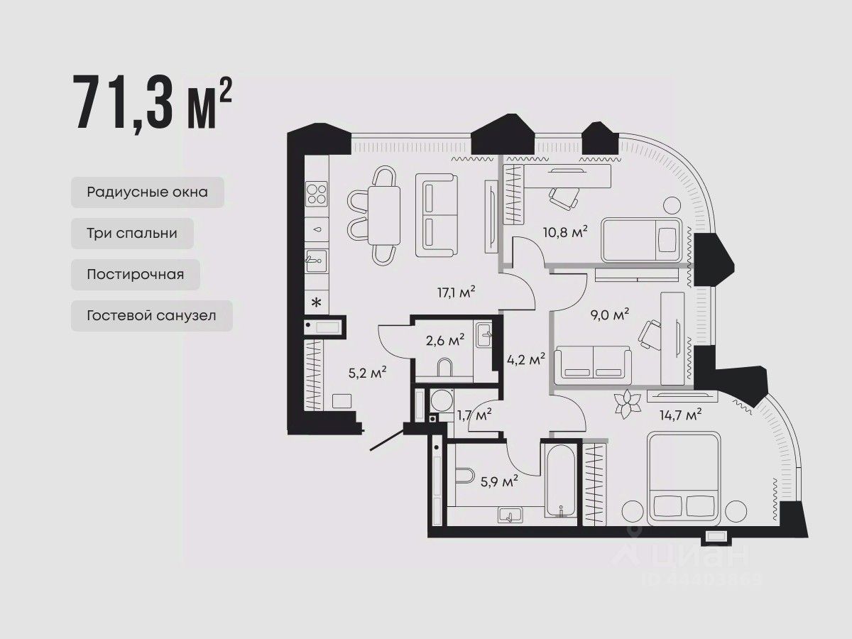 51 м² · Этаж 3 из 10