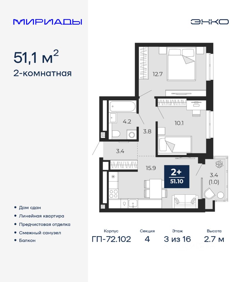 51 м² · Этаж 3 из 16