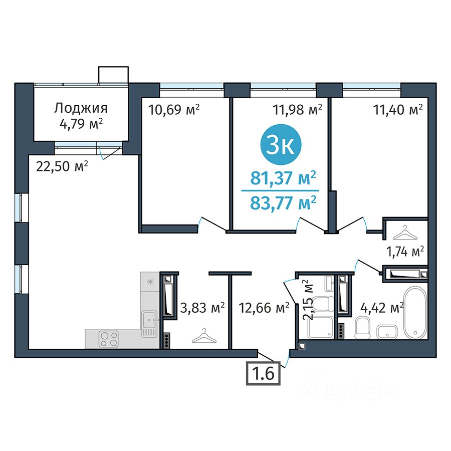 60 м² · Этаж 22 из 24