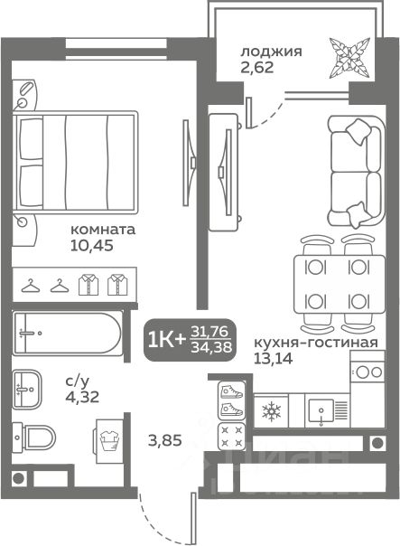 31 м² · Этаж 14 из 21