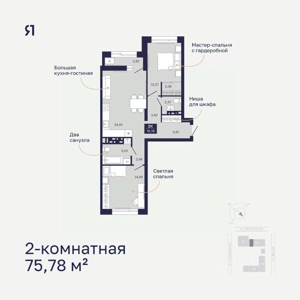 ''Дом на Ямской'' это клубный дом с элементами бизнес-класса в пяти минутах от делового центра Тюмени, для тех, кто привык принимать точные решения. Вы сможете пользоваться всеми преимуществами жизни в городе и одновременно ощущать спокойствие и баланс.Дома средней этажности сочетаются с идеально выверенными дизайнерскими подходами: мастер-спальни с личными гардеробными, санузлами и лоджиями, отдельные кладовые, лобби с мягкой зоной и библиотекой.