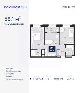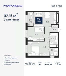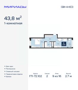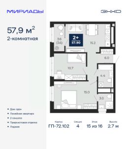 Спешите оформить бронирование по акционной цене, период акции ограничен! Стоимость квартиры указана со скидкой, ваша экономия составит 464,653 руб. Звоните, наши менеджеры вам все расскажут. Просторная 2-комн. квартира с предчистовой отделкой в ЖК ''Мириады'' на 7 этаже. Общая площадь: 67.2 кв.м., жилая: 27.9 кв.м., площадь просторной кухни-столовой: 16.3 кв.м. Квартира - распашонка, без проходных комнат, окна выходят на paзные стороны дома. В квартире одна лоджия, два совмещенных санузла. Высота потолков 2.7 м. Дом монолитный, двухподъездный, переменной этажности, от 14 до 18 этажей. Квартира находится во 2-й секции высотой 14 этажей в корпусе ГП-72.104. На этаже 8 квартир. В подъезде 1 пассажирский и 1 грузовой лифт. На сегодняшний день строительство завершено, дом сдан в 4 квартале 2025 года. Оформление сделки по договору купли-продажи. Вселенная бесконечных историй. Ранее невиданный Тюмени масштаб: территория 240 гектаров и 1 650 000 м² застройки. Мириады это город масштабных перемен и больших возможностей. Город зеленых рощ и зеркальных озер. Город для работы, учебы и развлечений. Город для детей и их родителей. Город для всех и каждого. Проект расположен в районе Мыс рядом с ТРЦ ''Тюмень Сити Молл'' в границах улицы Тимофея Чаркова, Тобольского тракта и объездной дороги. Срок полного освоения территории - до 2034 года. #2MtetA