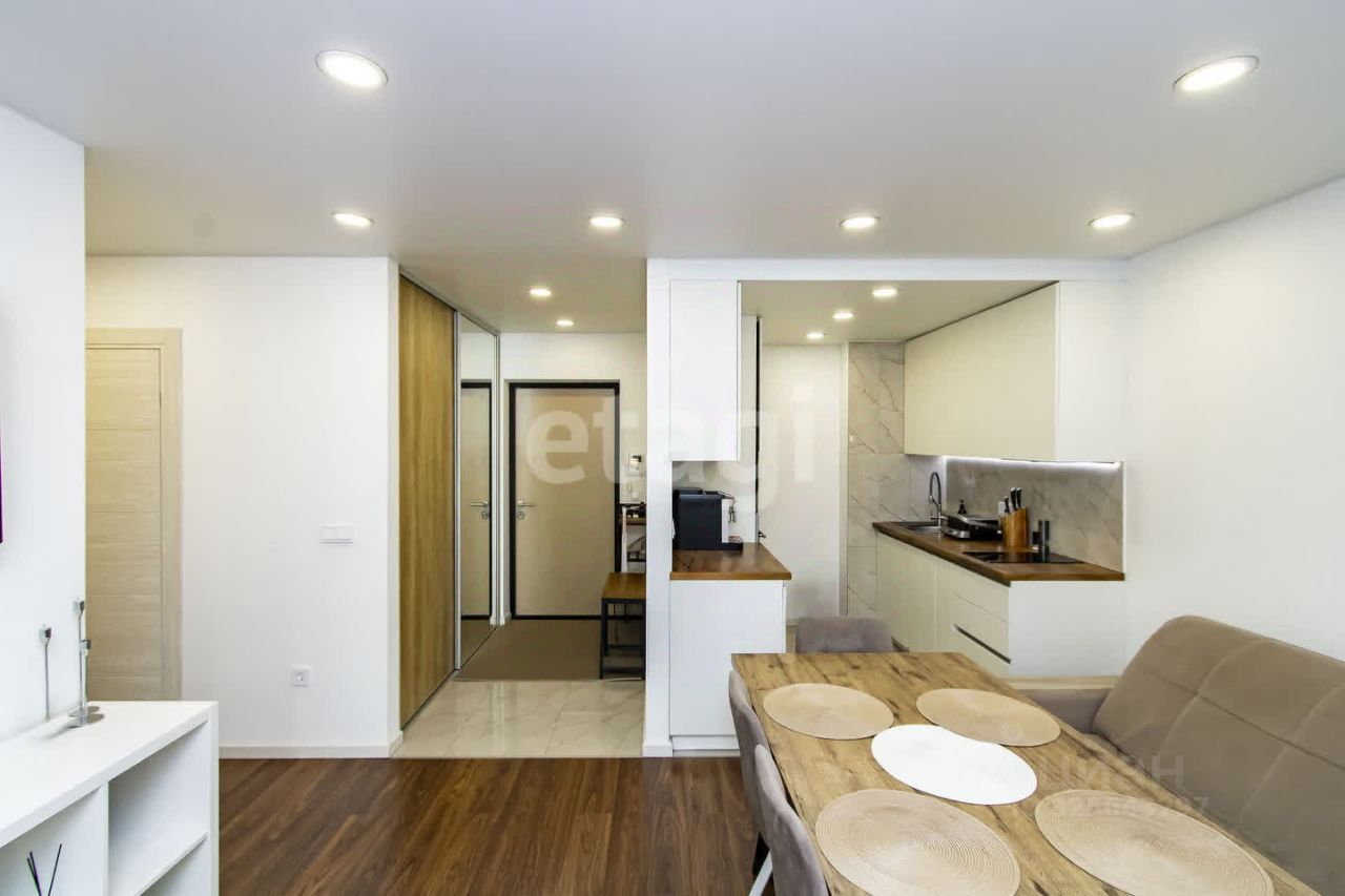 Представляем вашему вниманию стильную и функциональную квартиру формата евро-двушка, где каждая деталь продумана для вашего комфорта. Просторная кухня-гостиная площадью 28,2 кв.м. станет идеальным местом для семейных ужинов и встреч с друзьями, а уютная спальня подарит вам заслуженный отдых. Квартира оборудована всем необходимым: вместительная гардеробная, закрытая лоджия для ваших растений или утреннего кофе, а также современный совмещенный санузел с теплым полом и бойлером. Панорамные окна в комнатах открывают живописный вид на зеленую прогулочную зону, наполняя пространство светом и воздухом. Выполнен качественный ремонт в спокойных тонах, использованы практичные материалы: ламинат и плитка на полу. Кухня-гостиная порадует вас продуманными сценариями освещения, создавая нужную атмосферу в любое время суток. Вся необходимая бытовая техника от известного бренда Bosch (посудомоечная машина, духовка, плита, вытяжка, стиральная машина) и кондиционер уже установлены. Квартира полностью готова к проживанию вся мебель и техника остаются новым владельцам. Жилой комплекс, где расположена квартира, это настоящий оазис спокойствия и безопасности. Закрытый, ухоженный двор с зонами отдыха и детской площадкой создает идеальные условия для семейного досуга. Дом находится на второй линии от дороги, что гарантирует тишину и отсутствие городского шума. К вашим услугам система телеметрии, подземный паркинг и общая колясочная для удобного хранения велосипедов и детских колясок. Входные группы выполнены с особым вниманием к деталям они красивы и функциональны. Сам жилой комплекс состоит из шести домов повышенной комфортности, предлагая продуманную инфраструктуру: удобный доступ для велосипедов и колясок, отличное благоустройство территории с сезонным озеленением и праздничной иллюминацией. Круглосуточное видеонаблюдение, включая парковочные места, и охрана обеспечивают ваше спокойствие. Зимой тротуары всегда будут чистыми благодаря своевременной уборке снега. В шаговой доступности расположены пункты доставки, уютные кофейни, пекарни и магазины, а также школы и детские сады. Управляющая компания предлагает удобное мобильное приложение, где вы можете отслеживать коммунальные платежи, оперативно создавать обращения по любым вопросам и быть в курсе новостей комплекса, включая анонсы мероприятий. Не упустите шанс стать обладателем этой замечательной квартиры в престижном жилом комплексе! Номер объекта: #1/552062/22044
